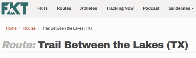 Fastest Known Time (FKT): Trail Between The Lakes in May 2020. Includes a report by James Hudgins of his trail completion in 6 hours 49 minutes! Current FKTs are on the FKT website.