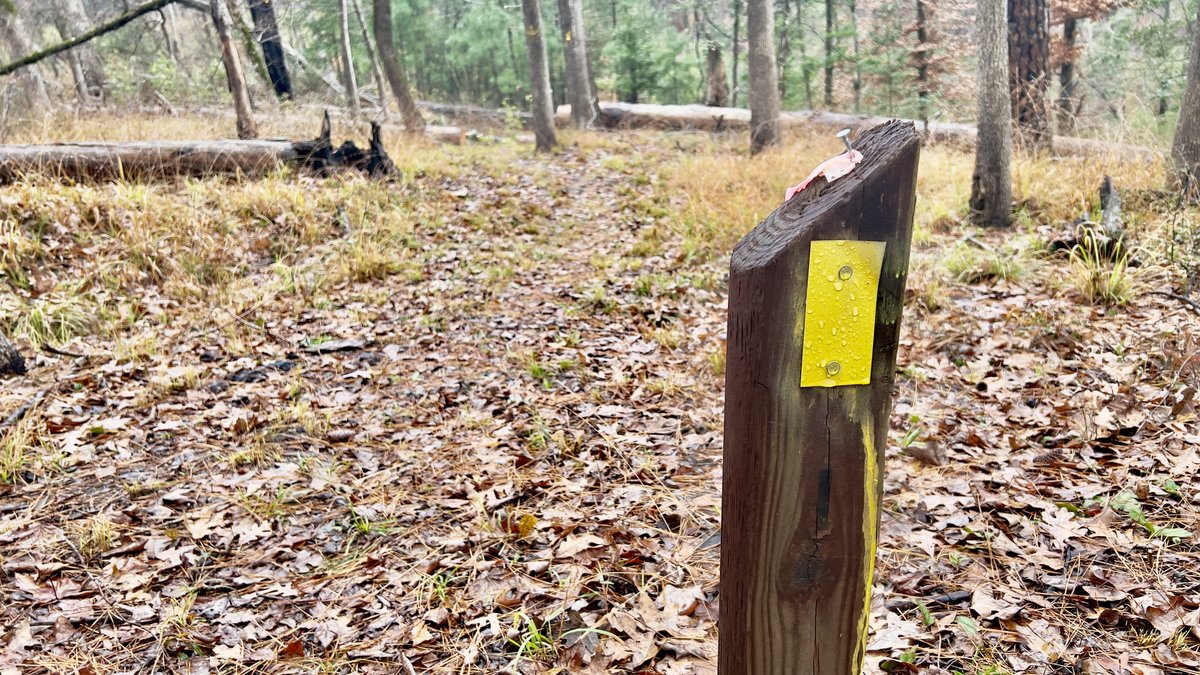 - There is hunter-related signage and markings, especially on the western half of the trail. This includes blue, white, or orange paint on trees. Generally, it is not confusing for trail users.